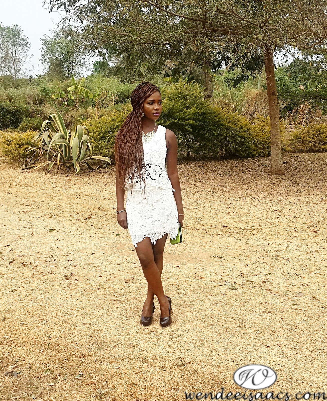pop of colour. You see when you walk into a boutique and you see an outfit and you go like “this outfit is so me, I want it”. Well, that wasn’t the case for me when I saw this lace top with its matching skirt. I was like, “naah, I dont want that”. I’m not sure why though. May be it was because of the fact that the back of the top had only two buttons or because I just felt I wouldn’t look good in that.